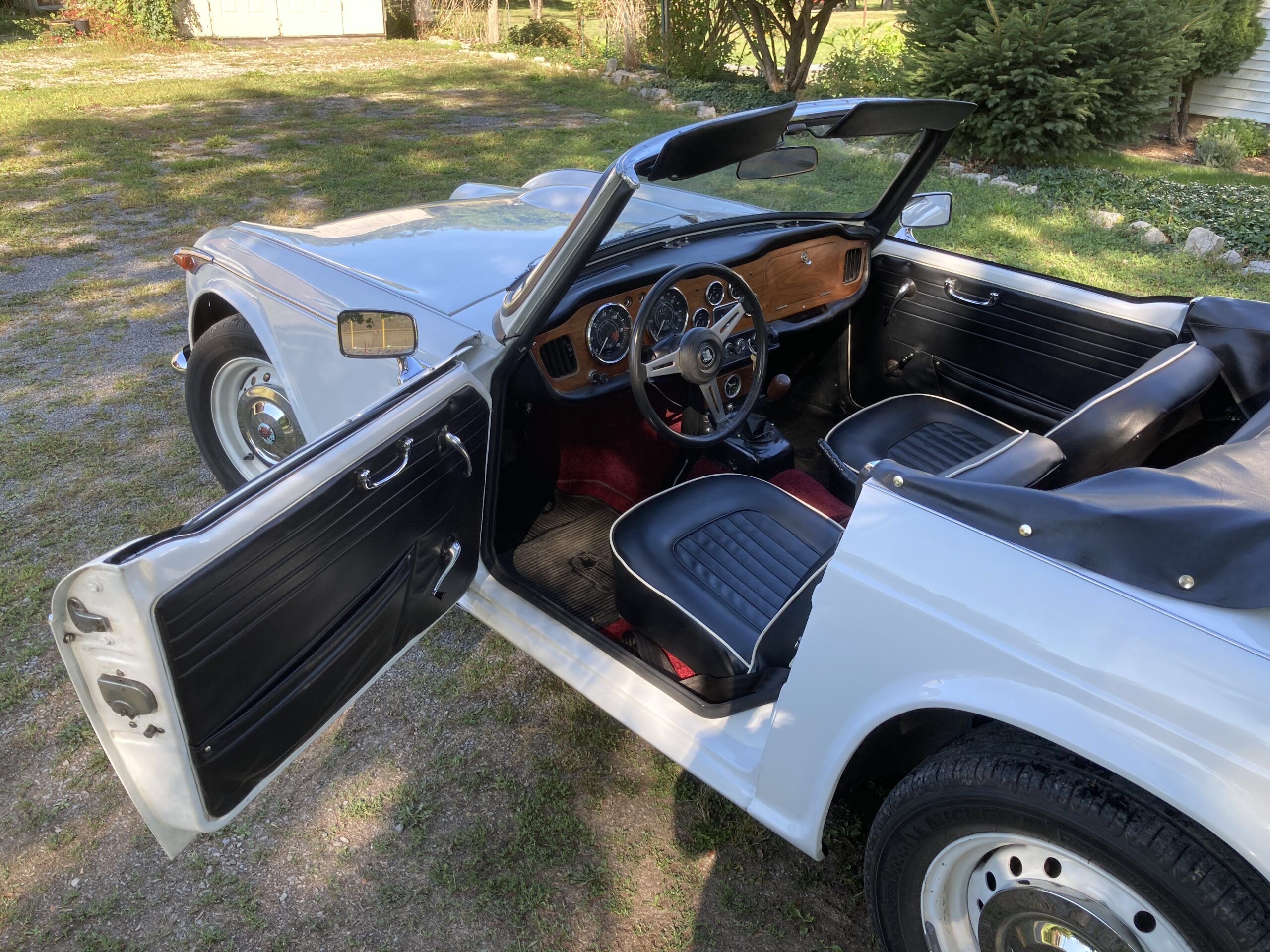 Rebuilt/ repaired the carbs, calipers, heater unit, hydraulics – TR6 brake system, rear brakes, front suspension. Head and crank machined by professional. Original chassis repaired and reinforced. Doors and mechanisms rebuilt. Original radiator recored. Differential rebuilt by professional. Original fuel pump rebuilt. Instrument gauges serviced by professional. Installed a renewed TR7 5-speed gearbox. Paint job by professional.