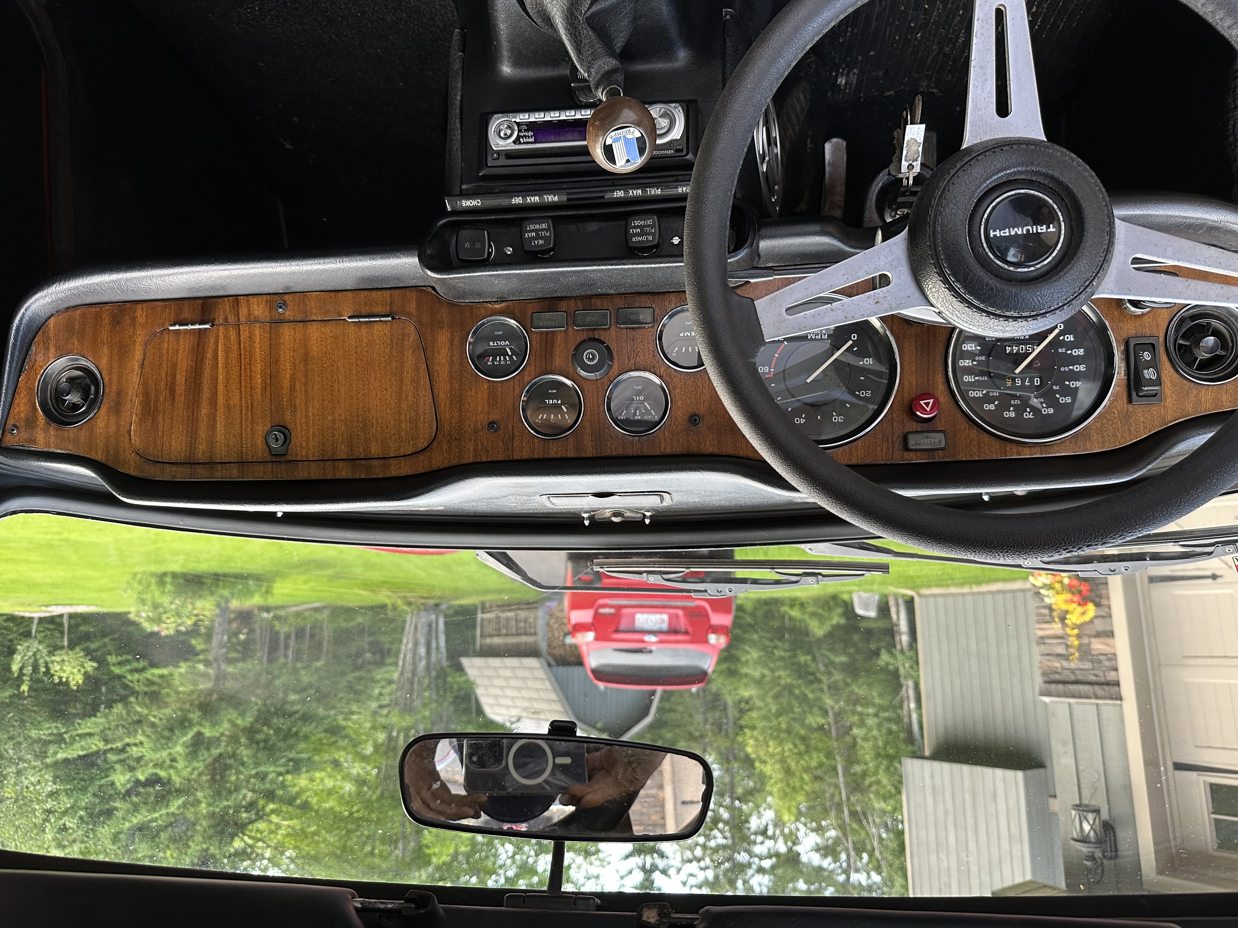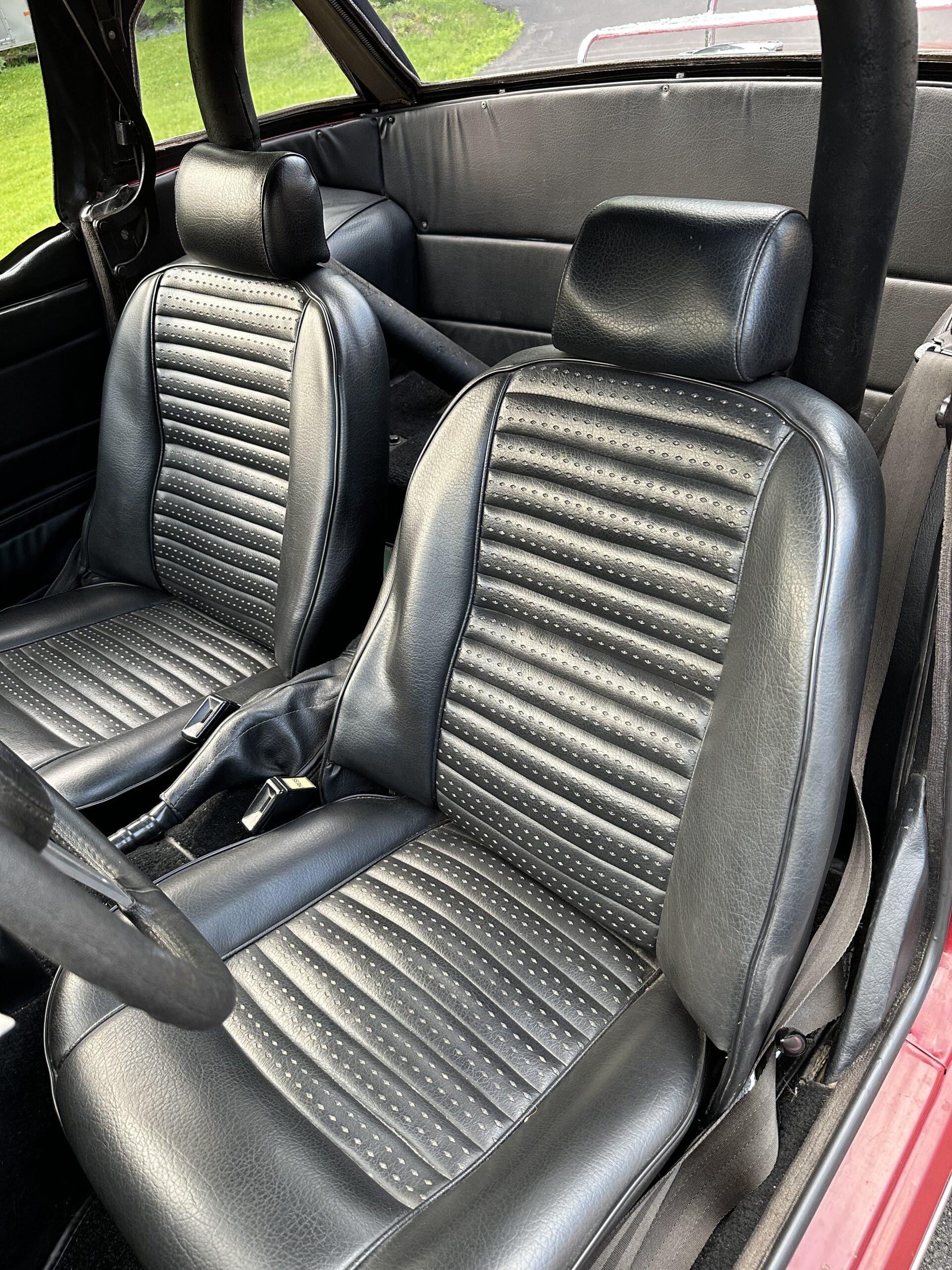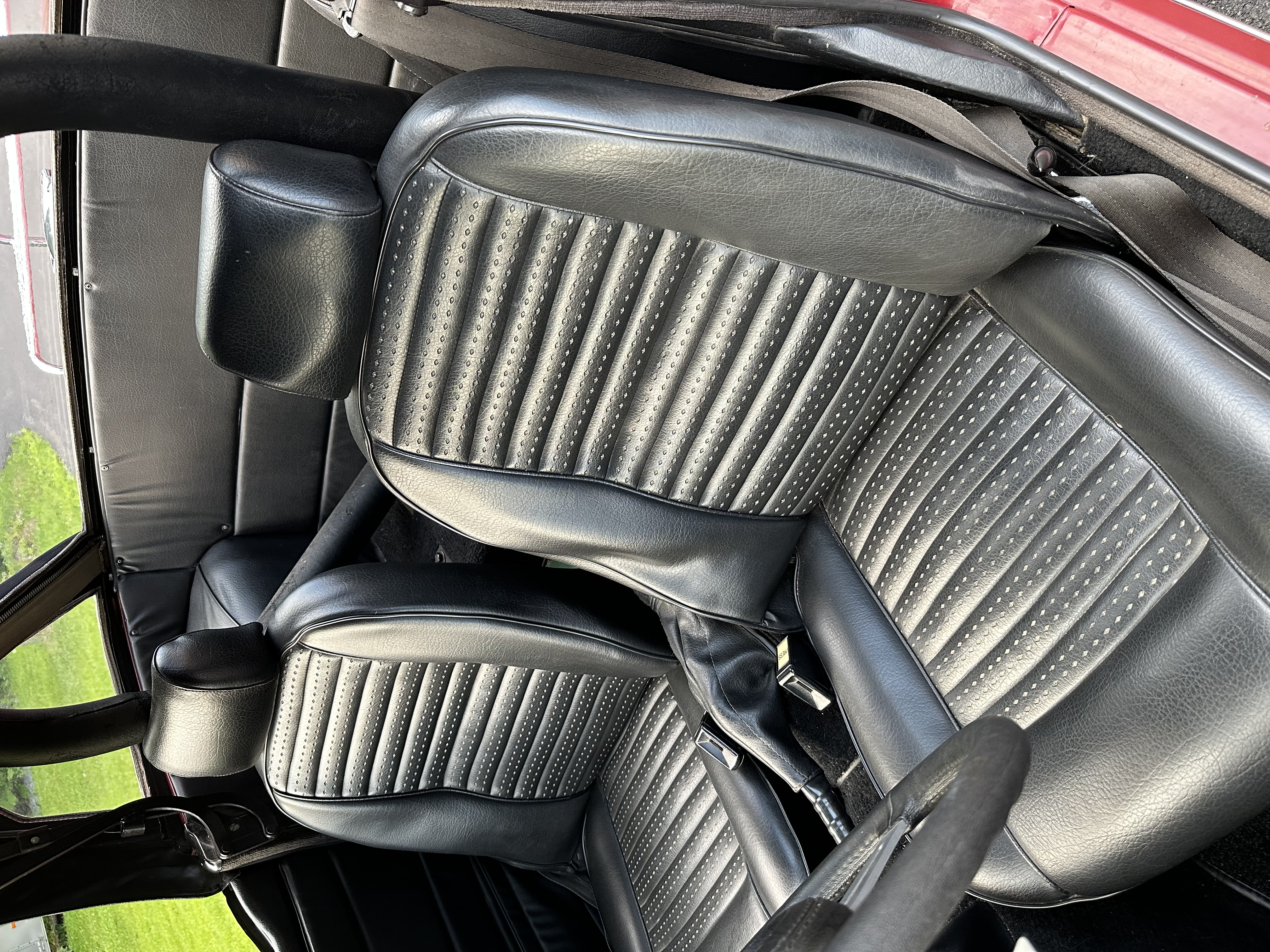 45,040 miles, maroon, black interior, 4 speed manual transmission